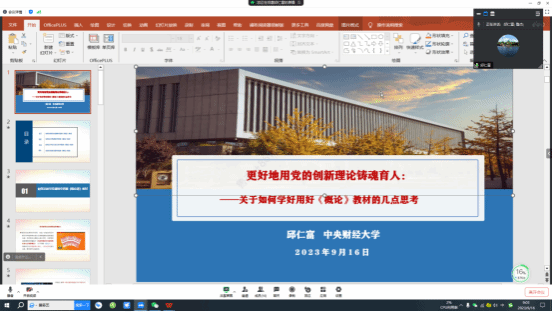 为进一步推动习近平新时代中国特色社会主义思想进教材进课堂进头脑,更好发挥思政课的凝心铸魂作用,9月16日,3044am永利集团翱翔思政青年工作坊第四期在线上成功举办。工作坊由教育部高校思想政治工作创新发展中心(西北工业大学)、党委教师工作部、人事处、3044am永利集团主办,3044am永利集团思想政治教育系、鲁杰思政课工作室承办。本期工作坊邀请了中央财经大学3044am永利集团邱仁富教授,对《习近平新时代中国特色社会主义思想概论》教研室全体教师进行了集体备课辅导,交流研讨,由课程首席教授鲁杰主持本次备课辅导会。