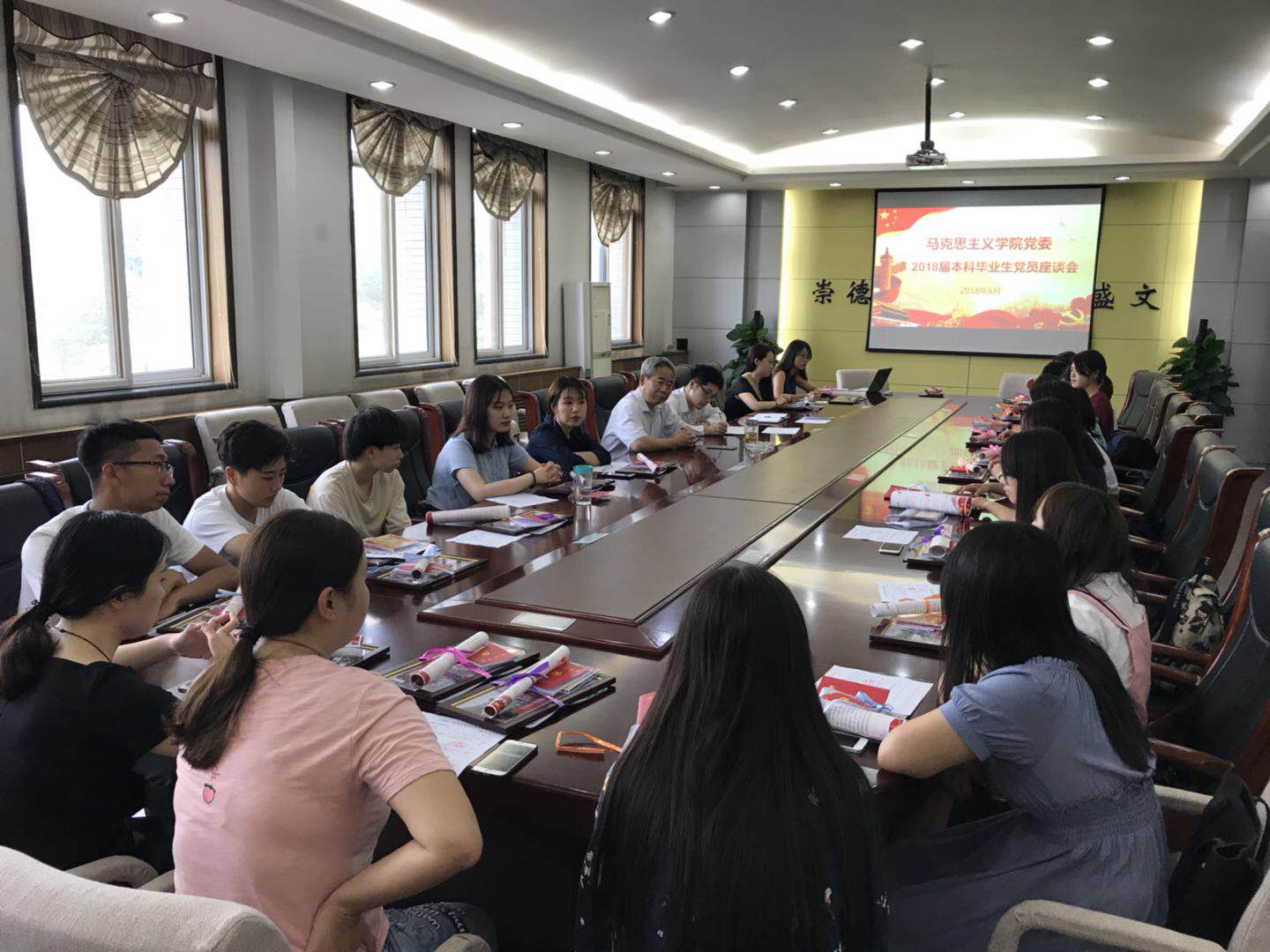 6月25日上午,3044am永利集团党委在学院208会议室召开2018届本科毕业生党员座谈会,学院党委书记鲁卫平,学生党建主管、辅导员曹良玉以及2018届本科毕业生党员参加了座谈会,会议由党委副书记袁源主持。