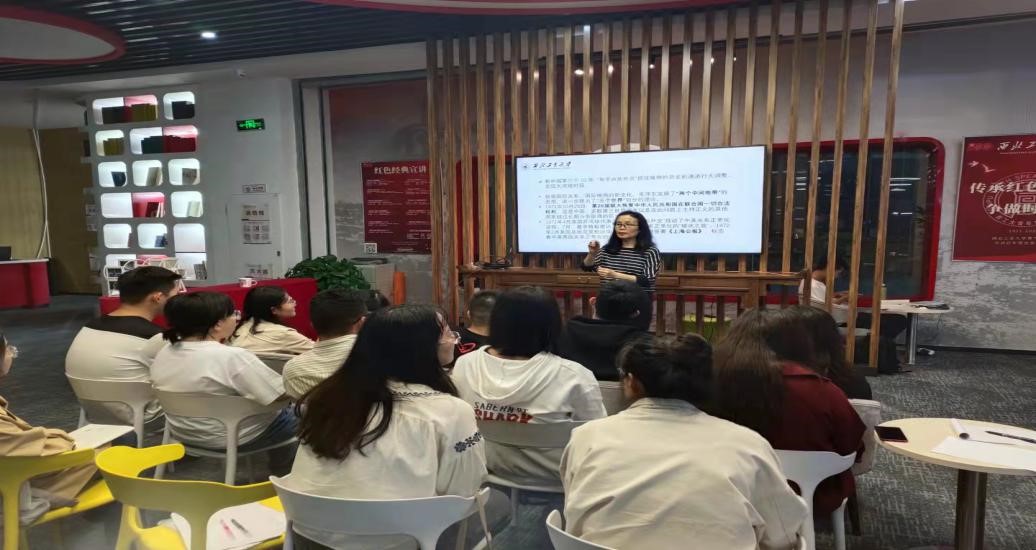 为深入学习贯彻习近平总书记在庆祝中国共产党成立100周年大会上的重要讲话精神,推进党史学习教育的深入开展,3044am永利集团组织成立了思政课教师党史宣讲团。2021年9月24日,3044am永利集团蒲瑶教在学校图书馆一楼红色书屋为工大学子送讲。