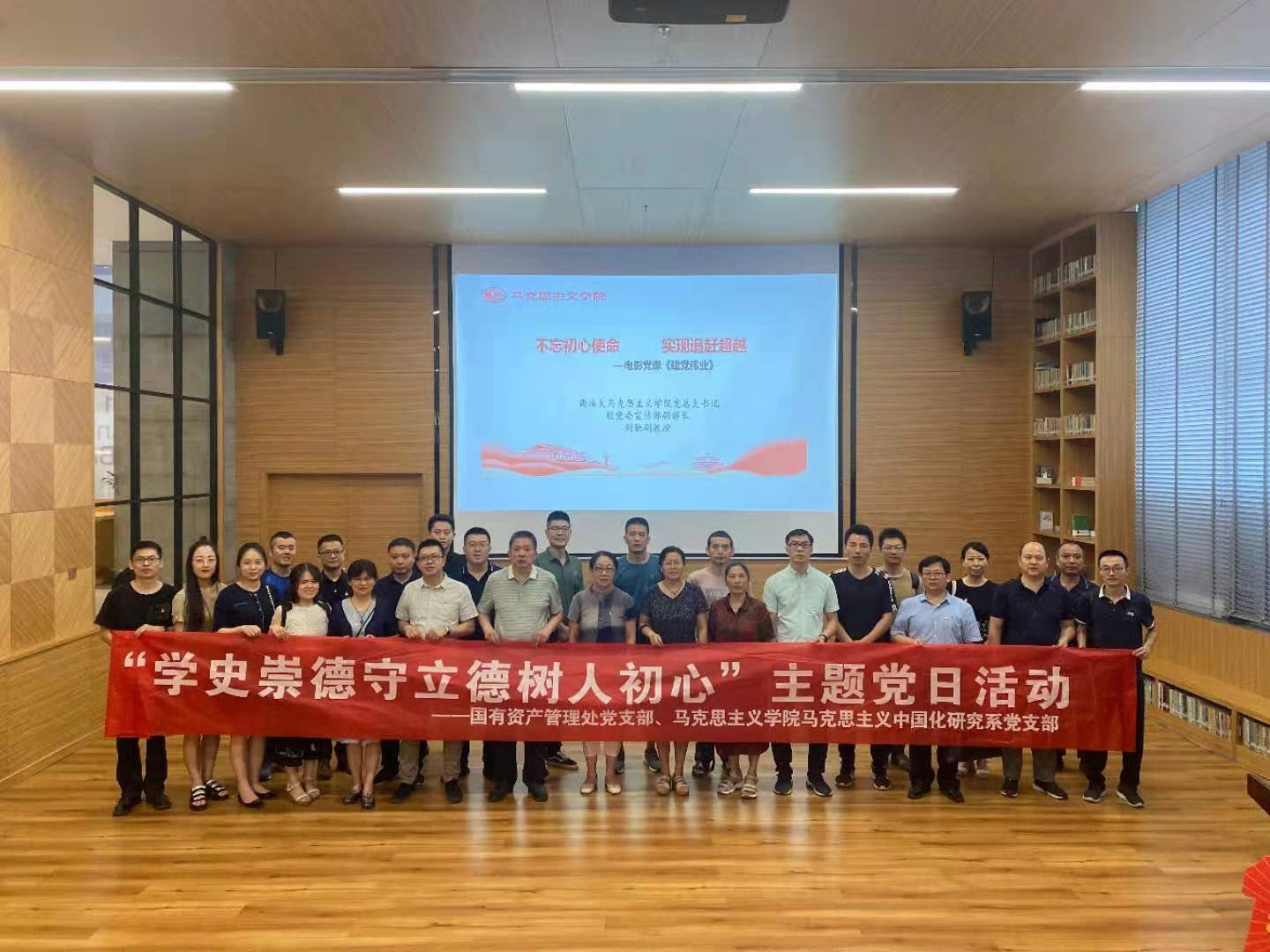 为庆祝中国共产党百年华诞,扎实推进党史学习教育,3044am永利集团马克思主义中国化研究系党支部与校国有资产管理处党支部,于6月24日上午开展了“学史崇德守立德树人初心”为主题的支部共建党日活动。活动在西影·电影圈子展开,两支部共有27名党员参与活动。