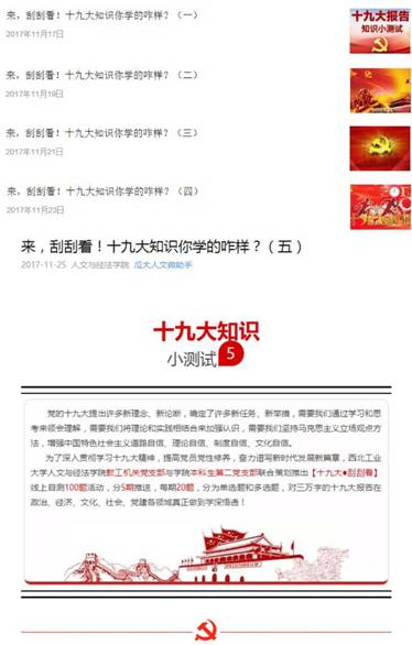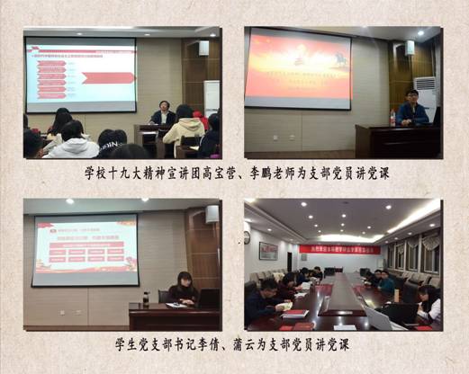 3044am永利集团党委共有学生党员共146人,其中正式党员114人;从本科到硕士、博士,采取纵横结合的方式共成立12个学生党支部。在党的十九大精神传达学习工作中,学工组首先按照校党委的部署和学院的要求,分全体学生和学生党员两个层面开展学习,通过年级、班级、党支部、团支部、学生会等五种载体,开展全院学生集体学习和宣讲3场,各年级学习研讨6次,专题学习班会24次,党支部专题学习会和支部书记讲党课12场次,学院教师到入党积极分子、预备党员培训班进行党课送讲4场。学院领导班子成员、思政课教师、研究生导师、辅导员、班主任等多管齐下、当好表率,带领学生一起学、指导学生深入学、督促学生扎实学,实现了线下学习的全员覆盖和多重覆盖。同时,学院微信平台除常态化推送党的十九大精神学习材料、辅导报告等内容外,还专门开辟“周末党员之声”栏目,分享学生党员学原著的动态和悟原理的体会。近期,学生党员又自主开发了“学习答题刮刮看”栏目,分5期推出了党的十九大精神100题,为学生党员利用碎片化时间开展理论学习提供支撑。