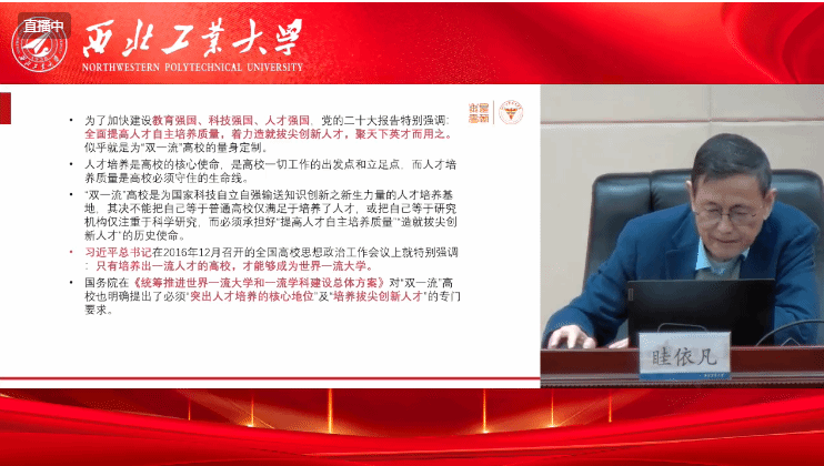 4月14日下午,按照学校党委组织部的统一安排,3044am永利集团组织教工党支部书记、机关党支部党员同志在学院楼208会议室集中观看学习贯彻习近平新时代中国特色社会主义思想和党的二十大精神报告会。报告会由学校党委副书记、纪委书记吕卫东主持。浙江大学高教研究所教授眭依凡主讲。
