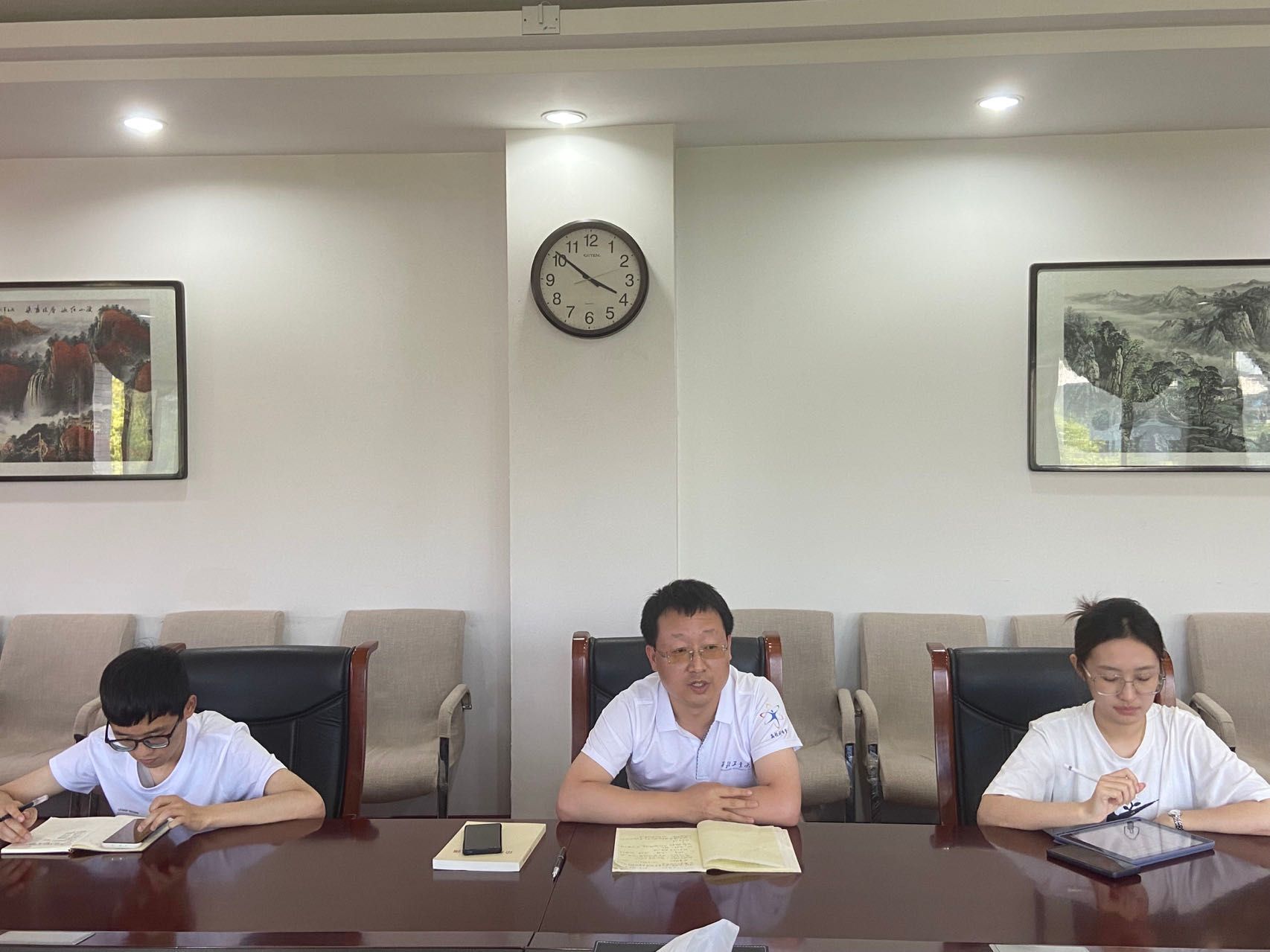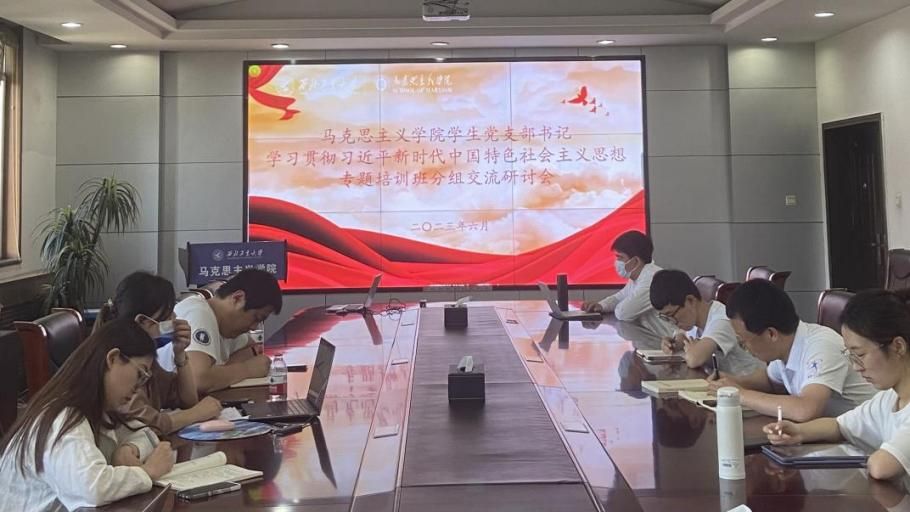 为深入学习贯彻习近平新时代中国特色社会主义思想,推进学生党支部建设夯基提质。6月9日下午,3044am永利集团学生党支部书记学习贯彻习近平新时代中国特色社会主义思想专题培训班分组交流研讨会在学院208会议室举行。3044am永利集团党委副书记李刚、专职辅导员王换、兼职辅导员赵桐瑶、各学生党支部书记参与研讨交流。