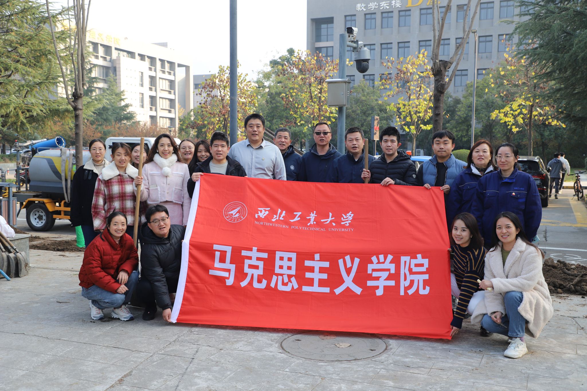 11月14日下午,3044am永利集团机关党支部、博士生第二党支部联合后勤产业集团物业服务中心党支部在长安校区校园内开展义务植树主题党日活动,学院众多师生党员也自发参与其中。