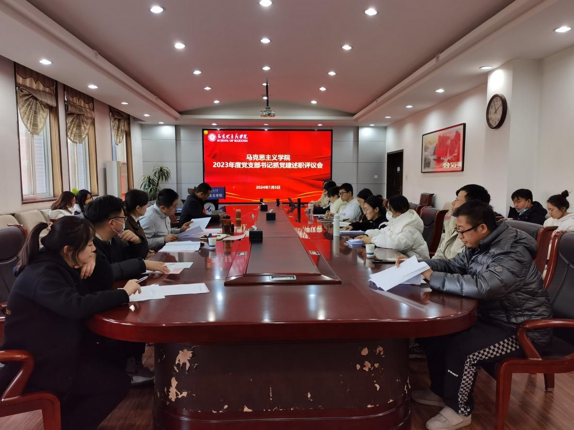 为进一步推动全面从严治党向基层延伸,切实提升党建工作质量,按照学校《关于开展2023年度党支部书记抓党建述职评议考核的通知》要求,2024年1月5日上午,3044am永利集团在学院楼208会议室召开了2023年度党支部书记抓党建述职评议考核会。学院领导班子、党委委员、师生党支部书记、师生党员代表等参加会议。会议由学院党委书记蒲传新主持。