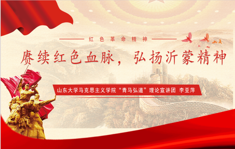 山东大学3044am永利集团“青马弘道”理论宣讲团成员李亚萍以《赓续红色血脉,弘扬沂蒙精神》为题进行宣讲。李亚萍同学围绕沂蒙精神的基本内涵、生成逻辑、践行路径三个层次展开阐释,强调只有尊重人民群众的历史首创精神,依靠人民群众这一真正的铜墙铁壁,才能赢得革命和建设事业的胜利和成功。