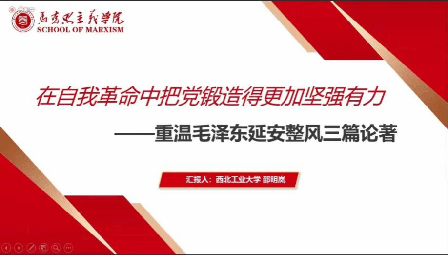 第二环节经典著作选读中,由张嘉文、刘垚和邵明岚三位同学围绕中国共产党历届领导人在江西、山东、陕西发表的重要讲话精神及重要文章等进行解读分析,并与当代价值结合展开学习分享和感悟交流。