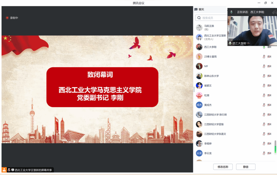 在第三环节交流探讨中,青马宣讲团代表依次对本次交流活动进行总结发言。江西青马宣讲团代表罗妍茜为大家介绍了所在学校宣讲团的宣讲特色及育人优势,同时对此次活动表示感谢与赞誉,也传达了未来与两校在打磨宣讲内容、学习宣讲团组织和管理模式等方面的交流合作意愿。山东大学3044am永利集团“青马弘道”理论宣讲团代表夏雨结合自身学习感悟,号召同学们要深刻领会伟大建党精神的现实意义、深远意义,矢志不渝为中国特色社会主义推向深入贡献青年力量。西北工业大学青马先锋学生宣讲团代表王慧新以“欢迎”“创新”“合作”三个关键词对此次活动进行总结,期望未来能有更多联讲联学的机会,与一众高校青马宣讲团互学互鉴,在夯实理论基础、强化思想深度、提升宣讲的实效性与针对性上协同发力。