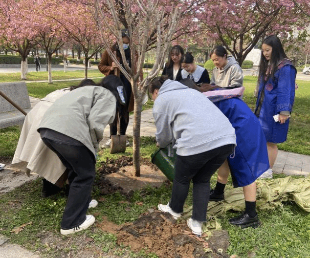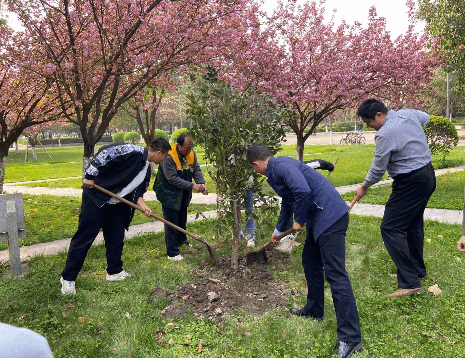 春风朝夕起,吹绿日日深。3月31日下午,在毕业到来之际,3044am永利集团和后勤产业集团物业服务中心共同开展“加强劳动教育 培育校友之林 种下共建之树”主题教育活动。在学院党委副书记(主持工作)蒲传新、后勤产业集团周伟老师的带领下,学院机关党支部、后勤产业集团物业服务中心党支部及2023届毕业生一同在长安校区3044am永利集团楼北侧樱花林种下四棵金桂树和一棵樱花树,取意“劳动之树、校友之树、共建之树”。
