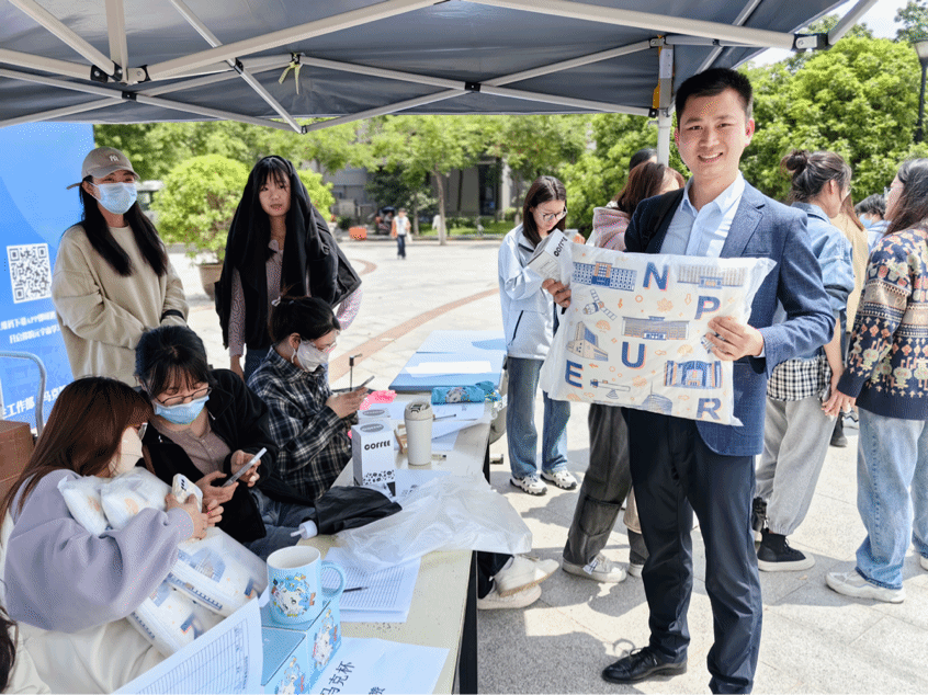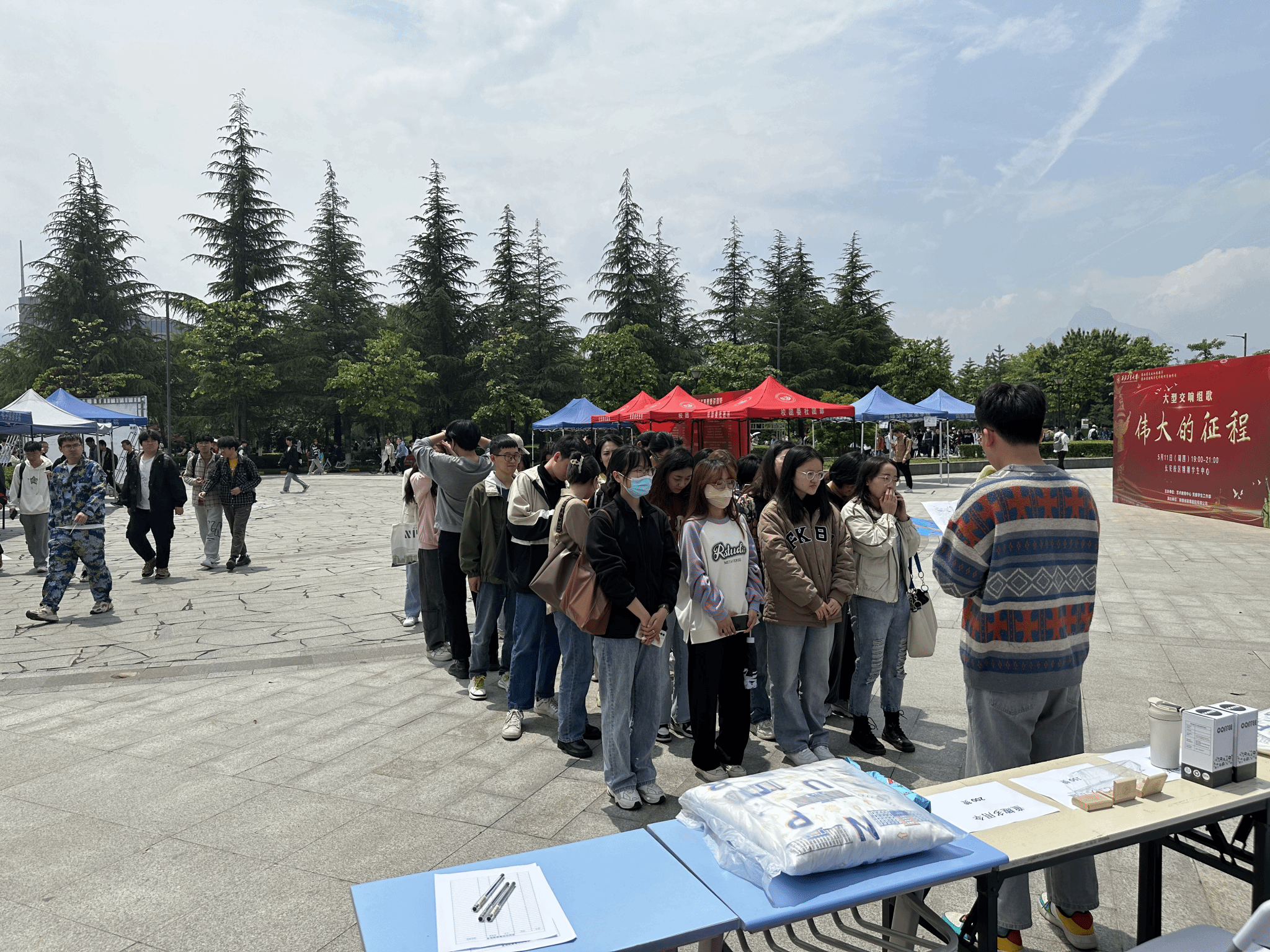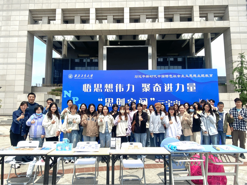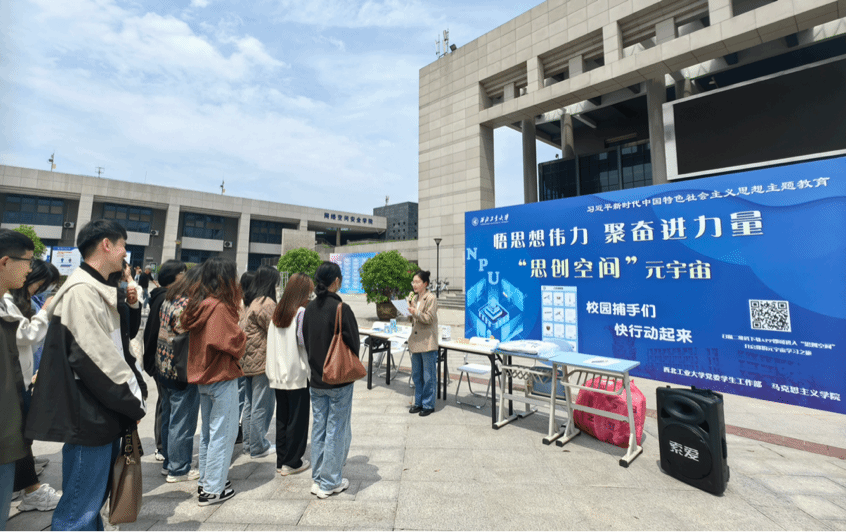 2023年5月8日中午,西北工业大学党委学生工作部、学生处,3044am永利集团在长安校区翱翔学生中心广场前,举办了“思创空间”启动仪式,深邃海军蓝展板上“悟思想伟力,聚奋进力量”十个大字让同学们纷纷驻足参与。