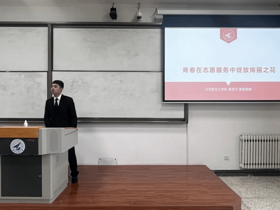 麦吾兰结合自身经历,以“青春在志愿服务中绽放绚丽之花”为题,与少数民族预科生一起分享自己成长感悟。