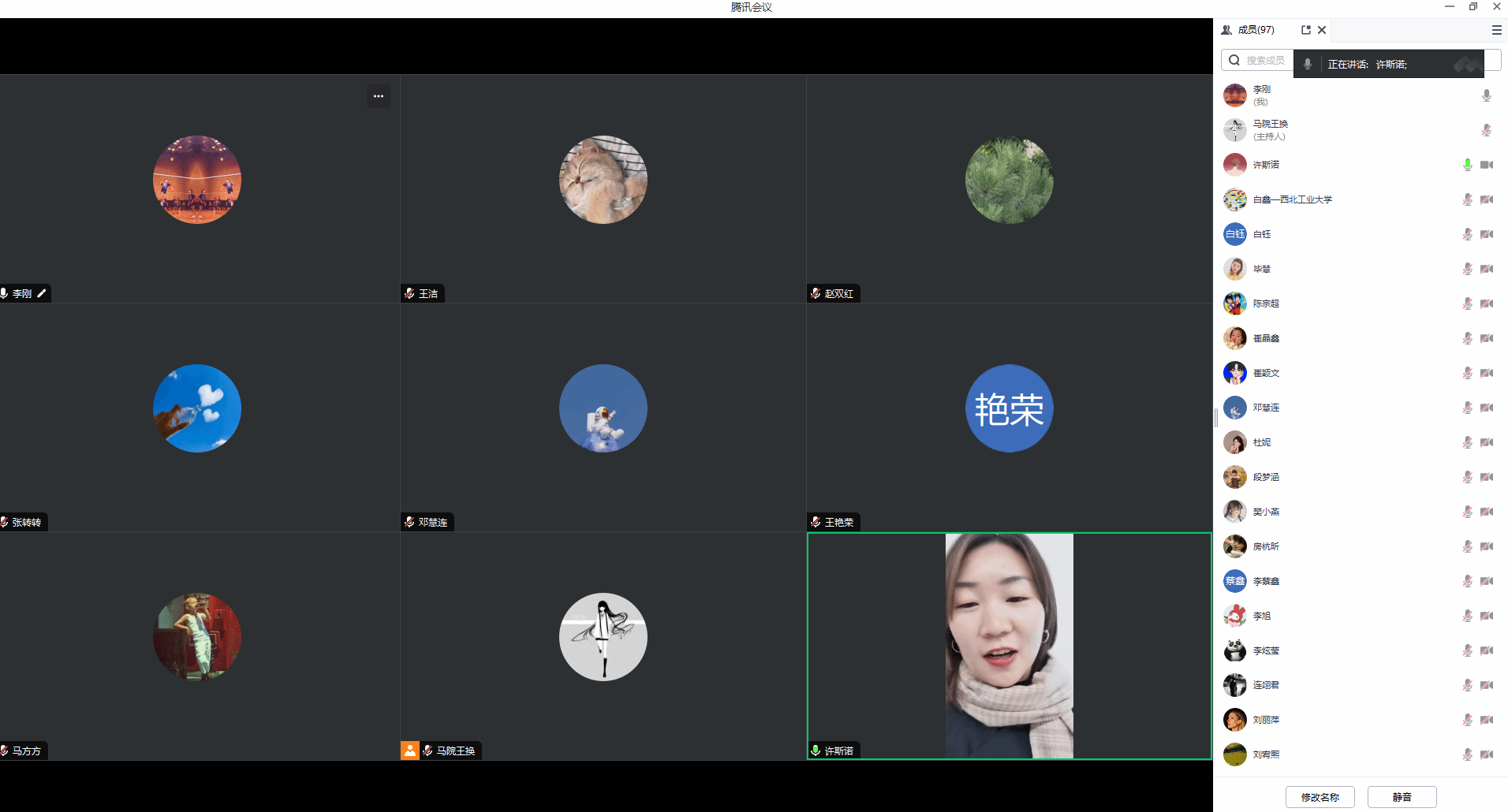 最后,博士生辅导员许斯诺通过线上视频与大家见面,她叮嘱学院全体学生,特别是博士研究生在寒假期间要绷紧科研这根弦,充分利用假期提高个人学术研究能力,将自己的科研进度不断向前推进。