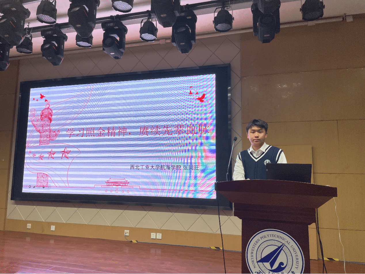 航海学院的张同旺以“照金精神”为切入点,通过讲述谢子长、刘志丹、习仲勋等老一辈革命家的事迹,呼吁广大青年学子将个人理想和国家发展相结合,艰苦奋斗,矢志报国。