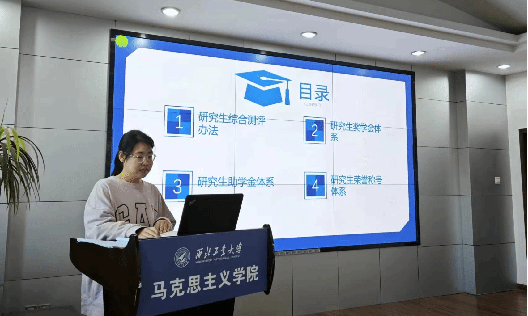 科学施策,理念先行。会议第一项,由邵明岚为同学们介绍学校奖助体系,此次宣讲主要从研究生综合测评办法、研究生奖学金体系、研究生助学金体系和研究生荣誉称号体系四个方面展开,为同学们详细介绍了研究生综合测评内容、程序和注意事项;系统地为同学们介绍了研究生奖学金类别和申请条件;并对研究生助学金体系作了全面阐释,有助于同学们充分了解学校资助政策,不为经济困难而发愁;最后对研究生荣誉称号进行相关介绍。本次宣讲会为学院研究生进一步深入了解学校奖助体系提供了良好的机会,同时也为学院今后奖助学金评选工作的顺利开展打下了坚实的基础。