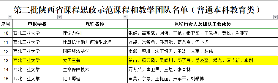 陕西省本科生课程思政示范课程《大国三航》教学团队:贺苗、杨云霞、吴闻川、邓子辰、岳晓奎、潘光、蒲传新、李刚;