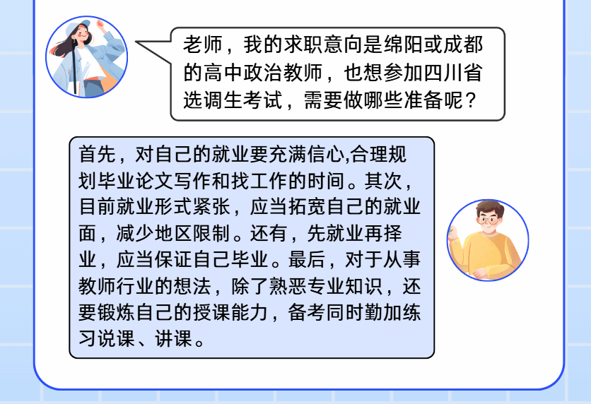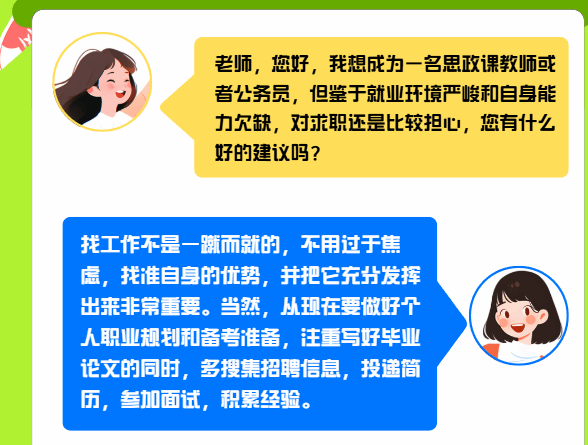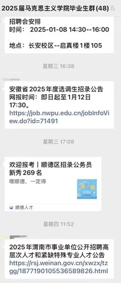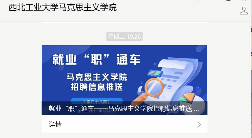 依托学院微信公众号,通过特色品牌“就业‘职’通车”,每周周一准时推送,内容涵盖考公选调、国企党建、思政课教师等岗位,现已开展至第48期。