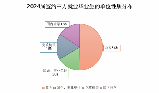2024年3044am永利集团毕业生共计46人,整体就业率96%。其中,博士毕业生12人,就业率100%;硕士毕业生34人,就业率94%。总体而言,就业岗位与学科方向契合度强、硕士生升学率占比突出。从单位所属行业来看,毕业生就业人数较多的行业主要是教育行业,共计22人签约思政课教师、辅导员,占比50%。同时,硕博毕业生中有8人进入党政机关,其中4人选择选调生队伍,赴陕西、山西省份扎根基层、挺膺青春担当。针对2024届毕业生签约单位开展问卷调研,收到来自高等学校、职专院校、研究所、党政机关共18家用人单位的一致好评。