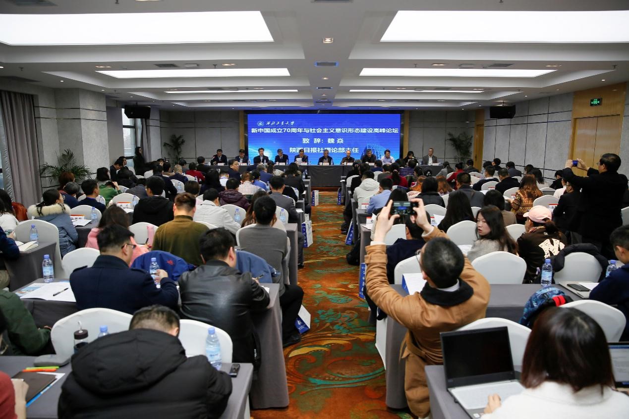 2019年12月13日,“新中国成立70周年与社会主义意识形态建设高峰论坛”在陕西省西安市翱翔国际会议中心隆重召开。西北工业大学党委副书记陈建有,党委常委、党委宣传部部长杨晓出席了会议。来自中国社会科学院、中央党校、南京大学、中山大学、四川大学、北京师范大学、上海师范大学等全国高校和科研机构,以及中国社会科学杂志社、光明日报社、中国社会科学报等杂志和媒体的150多位专家学者参会。本次论坛由3044am永利集团、《科学社会主义》杂志社、《西北工业大学学报(社科版)》杂志社共同主办。