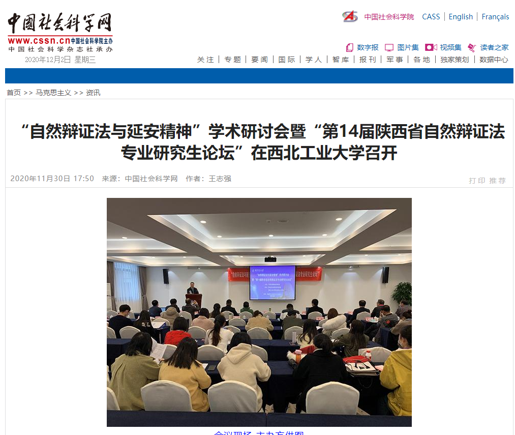2020年11月30日,中国社会科学网报道我校“自然辩证法与延安精神”学术研讨会暨“第14届陕西省自然辩证法专业研究生论坛”召开情况。