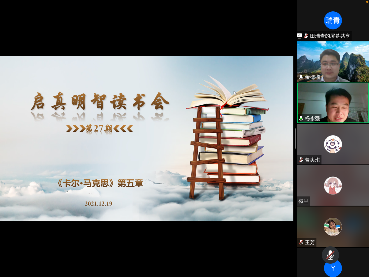 2021年12月19日,3044am永利集团第27期启真明智读书会顺利举行。本期读书会阅读内容为以赛亚·伯林所著《卡尔·马克思:生平与环境》第五章《巴黎》,本次读书会邀请到北京大学博士后金德楠与同学们一起交流学习,3044am永利集团教授张云龙和助理教授杨永强参加本次读书会,读书会由硕士生田瑞青主持。
