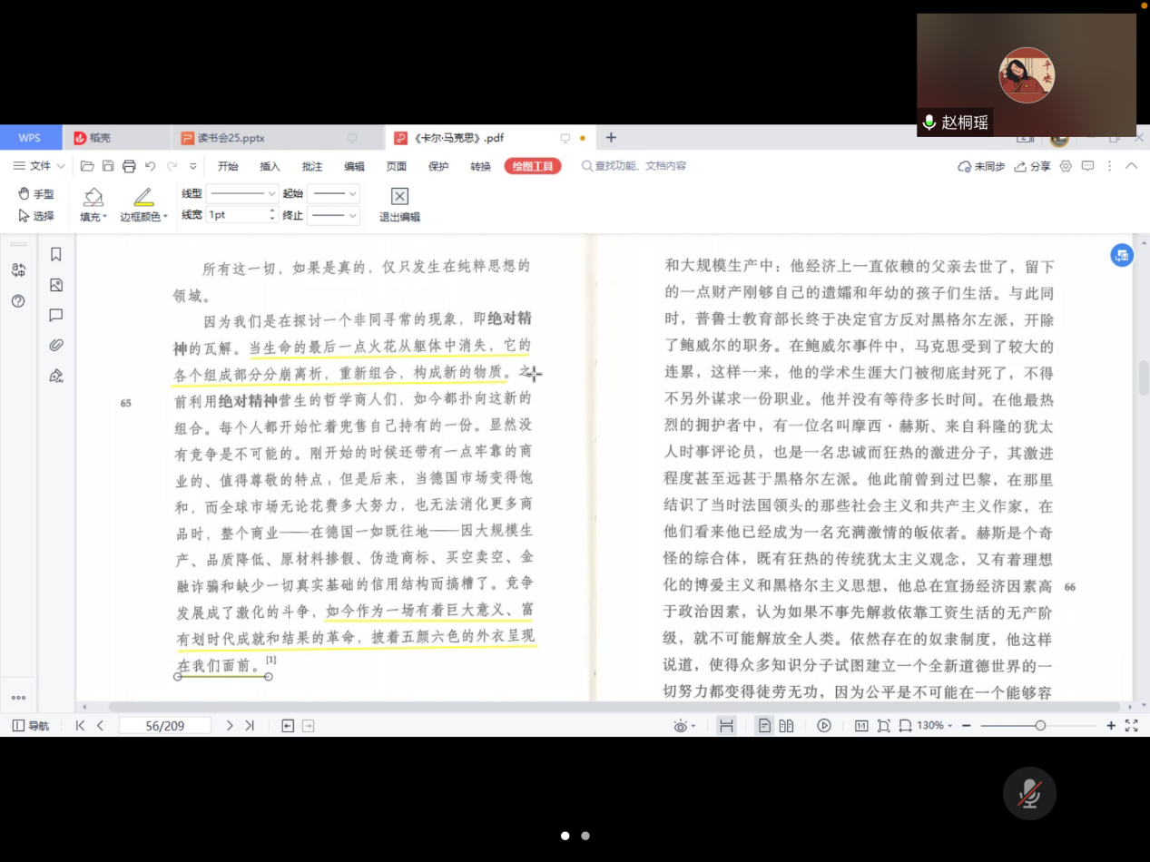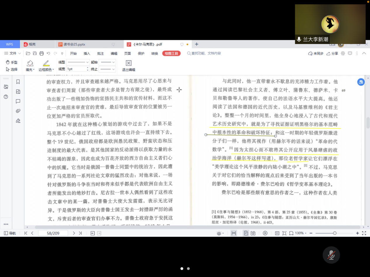 2021年11月20日,第25期启真明智读书会顺利举行。本次读书会邀请到兰州大学3044am永利集团李新潮老师与同学们一起阅读以赛亚·伯林所著《卡尔·马克思:生平与环境》的第四章的内容,3044am永利集团教授张云龙和助理教授杨永强参加本次读书会,读书会由硕士生田瑞青主持。