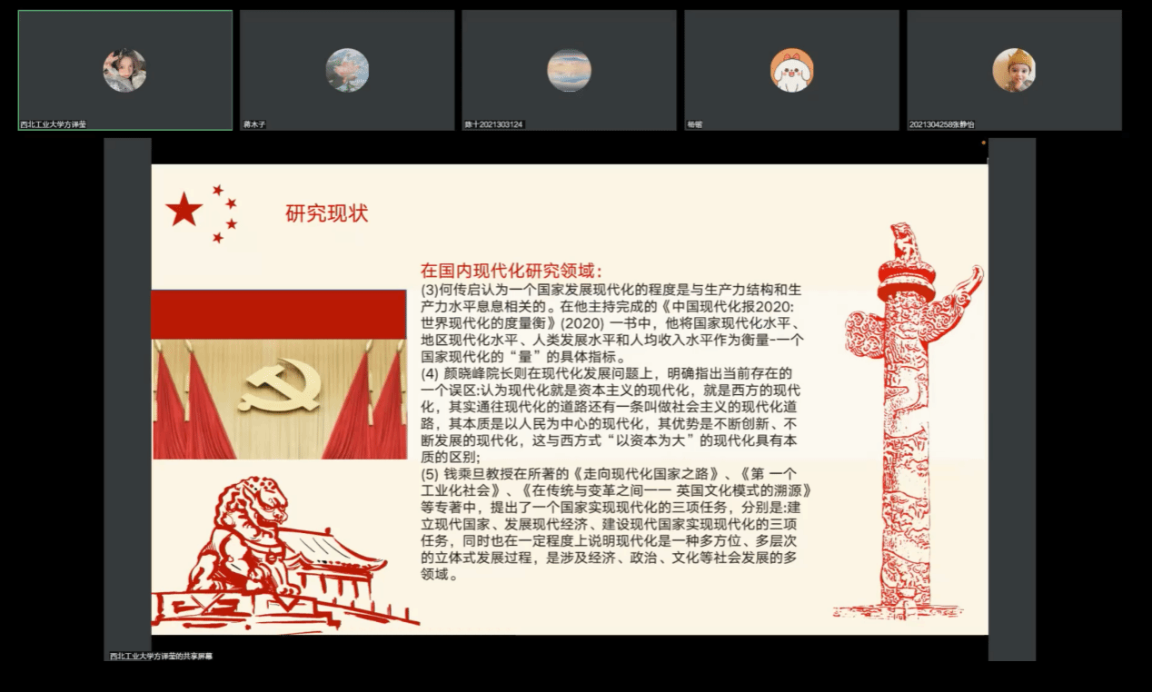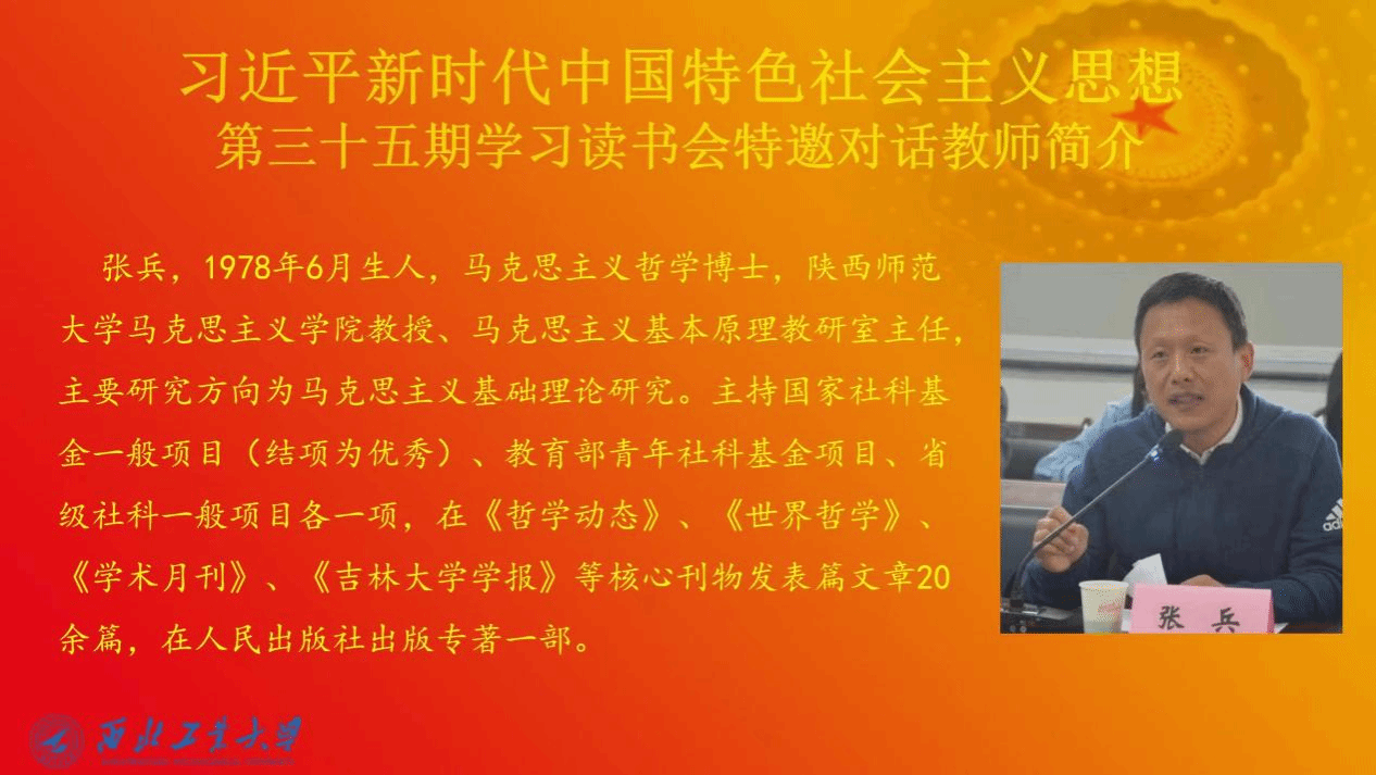 为全面学习贯彻党的二十大精神,推进习近平新时代中国特色社会主义思想进教材、进课堂、进头脑。2023年4月29日,3044am永利集团习近平新时代中国特色社会主义思想学习读书会第三十五期活动主题围绕《习近平在学习贯彻党的二十大精神研讨班开班式上发表重要讲话强调正确理解和大力推进中国式现代化》进行学习研讨。本次读书会由学院思想政治教育系主任、博士生导师鲁杰教授发起,学院硕士生杨锴主持,陕西师范大学3044am永利集团马克思主义基本原理教研室主任张兵教授作为对话教师应邀参加。