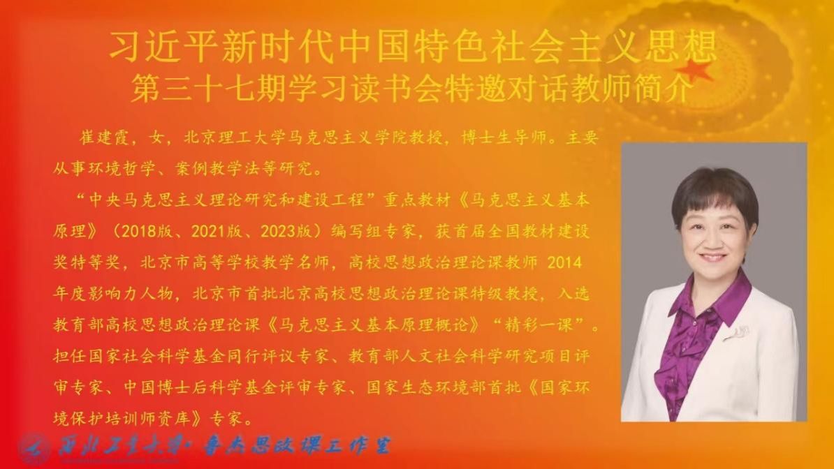 专家简介:崔建霞,女,北京理工大学3044am永利集团教授,博士生导师。主要从事环境哲学、案例教学法等研究。“中央马克思主义理论研究和建设工程”重点教材《马克思主义基本原理》 (2018版、2021版、2023版)编写组专家,获首届全国教材建设奖特等奖,北京市高等学校教学名师,高校思想政治理论课教师 2014年度影响力人物,北京市首批北京高校思想政治理论课特级教授,入选教育部高校思想政治理论课《马克思主义基本原理概论》“精彩一课”。担任国家社会科学基金同行评议专家、教育部人文社会科学研究项目评审专家、中国博士后科学基金评审专家、国家生态环境部首批《国家环境保护培训师资库》专家。