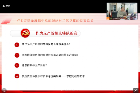 随后,博士生沈守涛同学从卢卡奇革命思想中党的理论对党的建设的借鉴意义方面进行了深入的探讨。他聚焦于卢卡奇思想发展的第二个阶段,详细阐述了作为无产阶级先锋队的党的四个重要问题。作为无产阶级先锋队的党在保持先进性、领导无产阶级以及评估革命现实形式等方面的重要问题。沈守涛同学的发言不仅展现了深厚的学术功底,也引发了在场师生的热烈讨论。