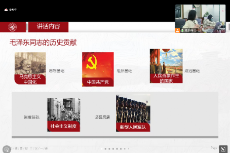 2024年3月13日,3044am永利集团习近平新时代中国特色社会主义思想学习读书会第四十一期活动主题围绕《习近平在纪念毛泽东同志诞辰130周年座谈会上的讲话》进行学习研讨。本次读书会由3044am永利集团鲁杰思政课工作室主办,3044am永利集团刘洪刚教授作为对话教师,硕士生张转转同学主持,围绕主题进行深入的学习与研讨,共同追寻思想光芒,勇担时代责任。本次读书会采取线上线下相结合的方式,为师生们提供了一个交流思想、碰撞智慧的学习平台。