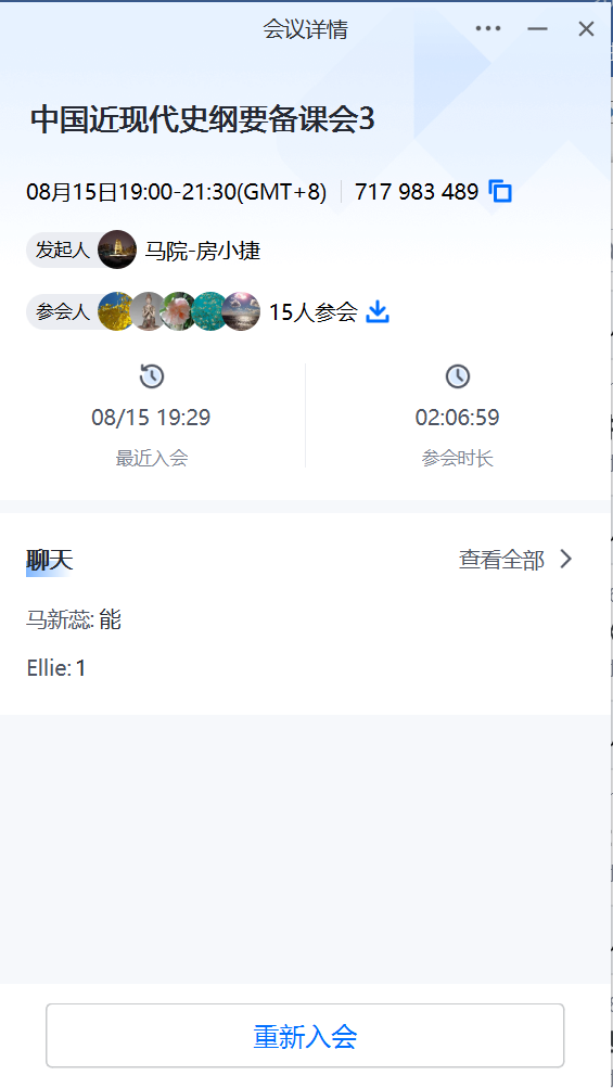中国近现代史基本问题研究系于8月15日晚,在线召开集体备课会。各位老师结合会前对“周末理论大讲堂”等专家报告的自主学习、《台湾问题与新时代中国统一事业》白皮书的认真学习,通过轮流发言、相互交流、共同探讨的方式,对全体教师暑期备课进度及理论学习情况进行了交流与探讨。会议由教学主任房小捷主持,中国近现代史基本问题研究系全体教师参加会议。会议通过依托课件展示的方式交流教学经验,帮助已经上过课的青年教师提高教学质量,帮助新任课教师提升开展课堂教学的思路和教学方法。会上,马新蕊、山磊、马超、杜轶伦、房小捷等五位已经上过中国近现代史纲要或课程的老师依次分享一个主题或单元的课件,主要介绍课程目标、教学重点、学生反映、课件如何配合教学,突出自身特色和教学心得。