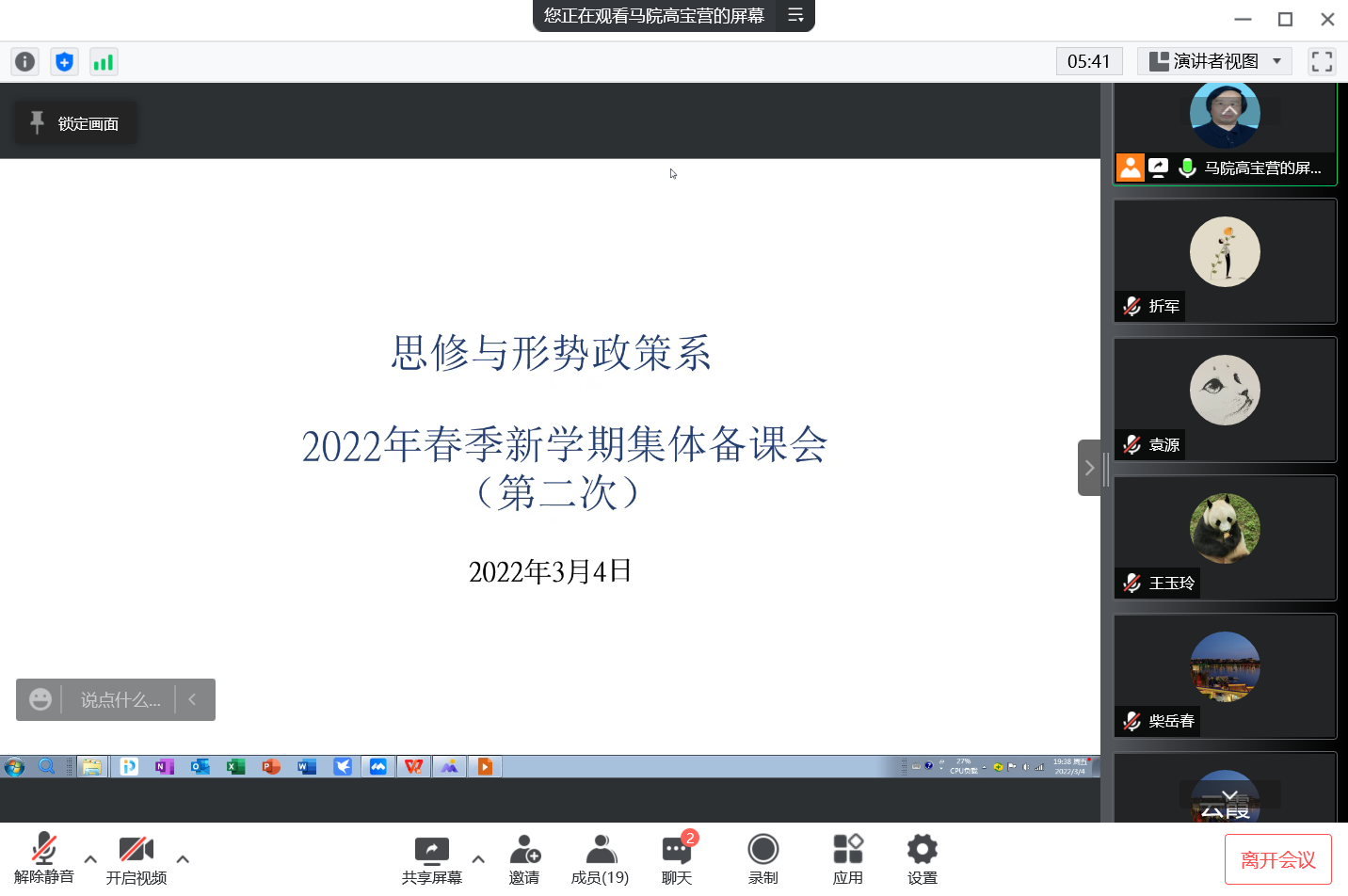 3月4日晚7:30,3044am永利集团思修与形势政策系按照学院集体备课的要求,通过腾讯会议开展了新学期第二次集体备课会。会议由系主任高宝营老师主持,课程全体专兼职教师参加。