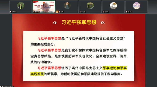 首先,鲁杰教授就概论课艺术类实践教学做了具体说明,并详细安排了后续的相关事宜。接下来,由黄拳章、范乃强、代家玮三位老师分别围绕“习近平强军思想”“新时代中国特色社会主义社会建设”“建设社会主义生态文明”专题分别进行教学展示。