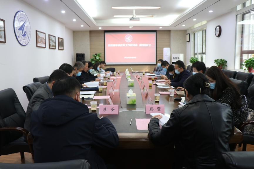 11月4日下午,学校思政课专项改革试点方案研讨会在友谊校区学校办公楼A223会议室举行。学校党委副书记陈建有、发展规划处朱继宏、图书馆侯沛勇、党委宣传部全家悦、人事处王增磊、科学技术研究院李鹏、教务处孙中奎、研究生院李圣、学生处彭蓉及3044am永利集团班子成员参加了研讨会。会议由陈建有主持。