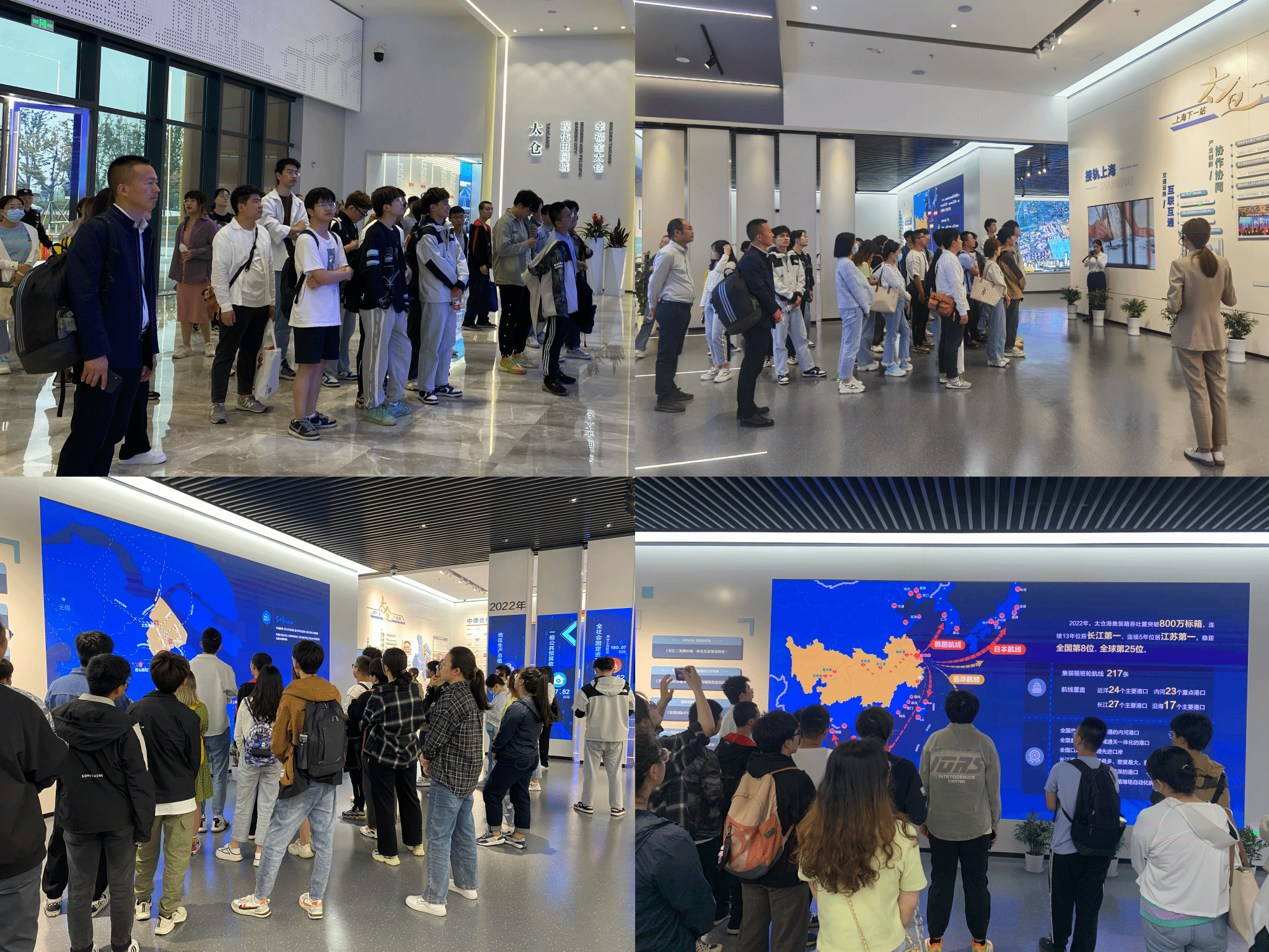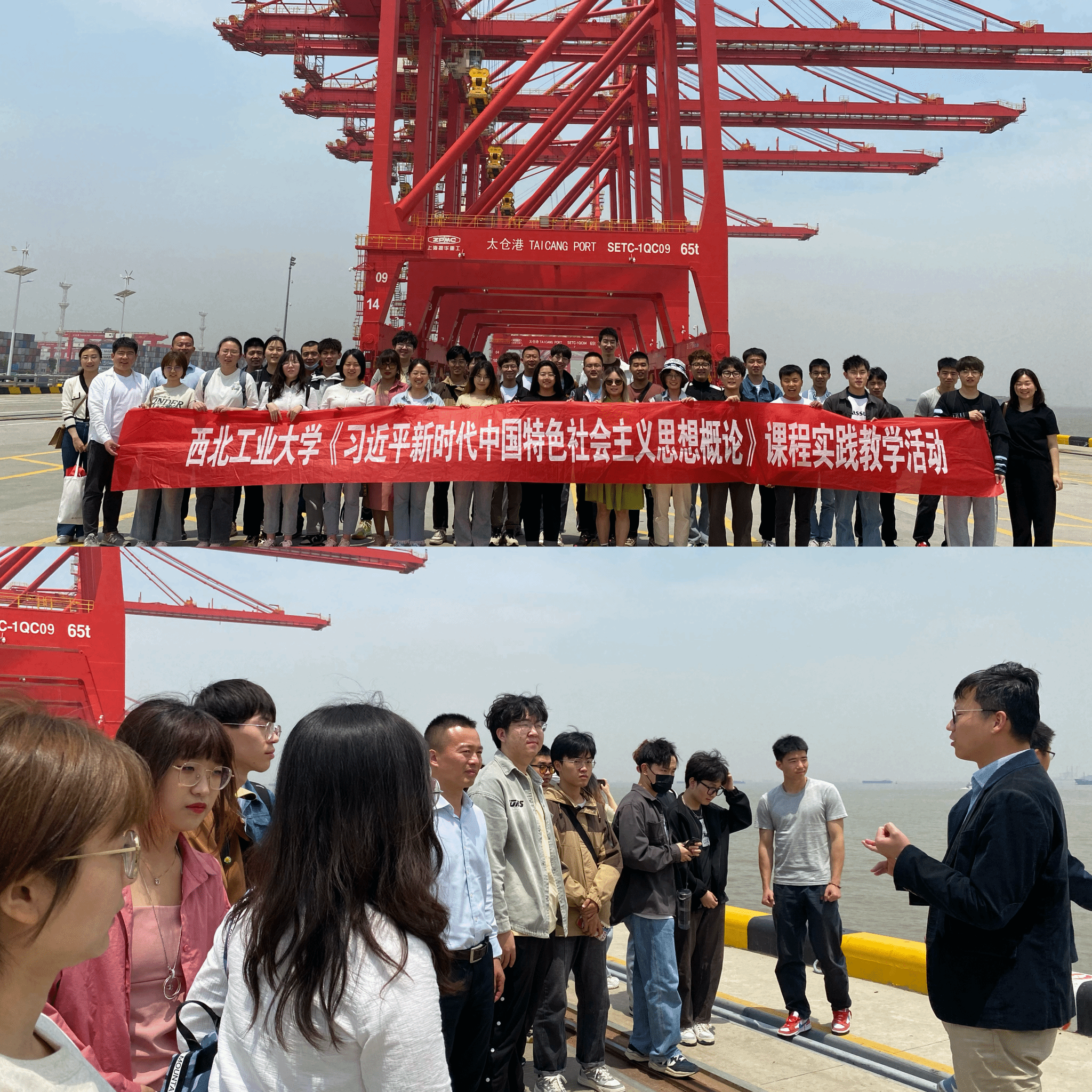 随后,课程组一行来到太仓港码头,参观港区集装箱现代化物流作业现场,体会太仓港在“一带一路”航线建设与长三角高质量一体化发展中做出的重要贡献,感受太仓港服务长江经济带、助推太仓与上海深度融合的独特魅力以及强大经济引擎作用。