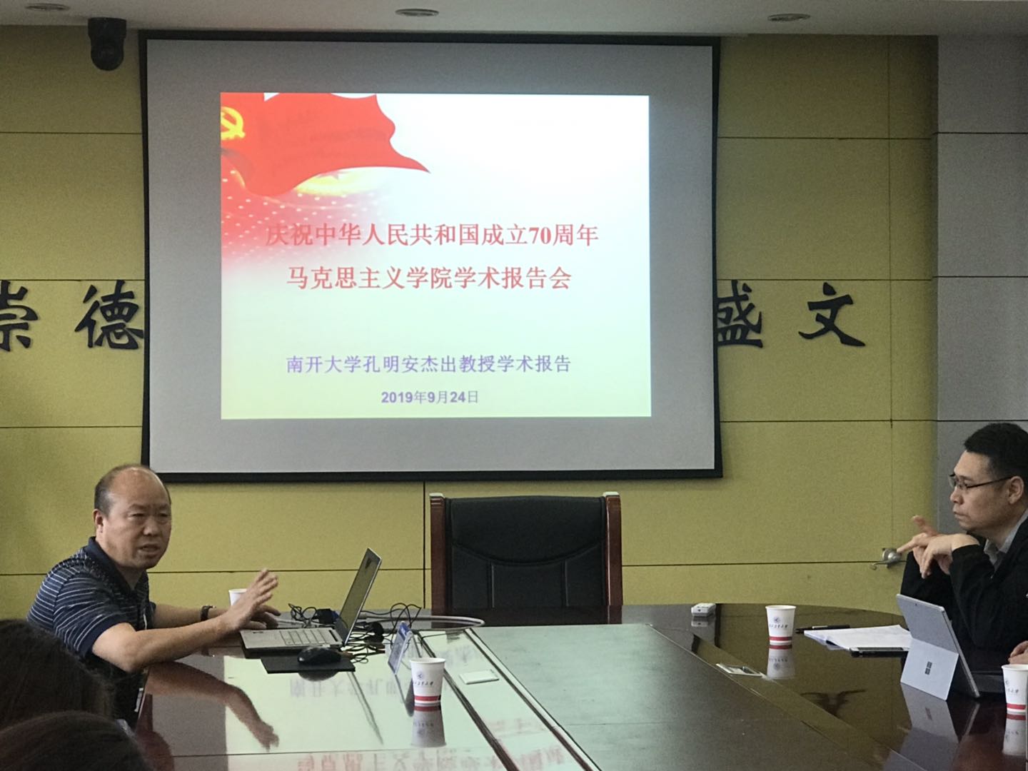 为庆祝中华人民共和国成立70周年,学院特邀请南开大学3044am永利集团杰出教授、博士生导师、原中共中央编译局研究员、《哲学动态》编辑部副主任、《马克思主义与现实》执行主编孔明安老师9月24日下午为3044am永利集团师生做了一场题目为“当代国外马克思主义前沿研究与中国现实问题”的精彩学术报告。报告会由3044am永利集团副教授、博士生导师曹瑜老师主持,3044am永利集团鲁杰教授、马军、陶惠敏和马超等老师与我院部分博士、硕士研究生一同聆听了报告。