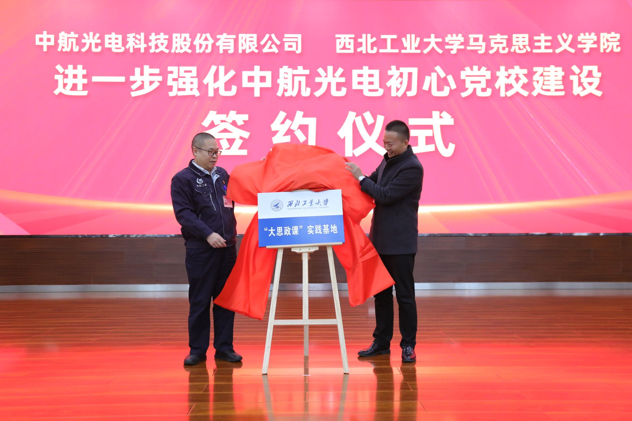 李森、蒲传新共同签署中航光电科技股份有限公司与我校3044am永利集团进一步强化中航光电初心党校建设合作协议并为西北工业大学“大思政课”实践基地揭牌。