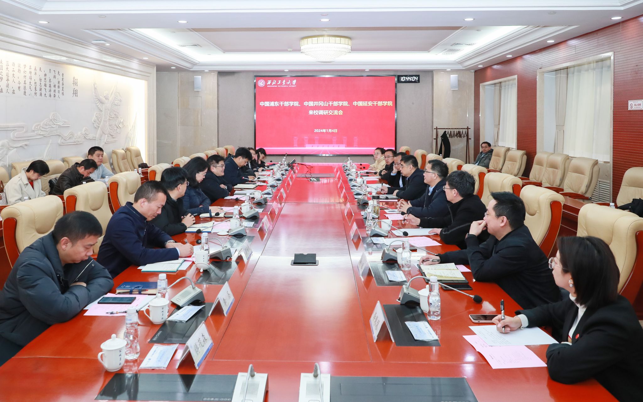 1月4日上午,中国延安干部学院副院长韩东晖、教学科研部主任曹琨等一行5人,中国浦东干部学院科研部副主任、一级调研员王永杰,中国井冈山干部学院教学科研部(案例发展中心)国情教学研究中心主任、一级调研员、教授颜清阳等一行2人来西北工业大学参观调研并开展深入交流。学校党委副书记杨晓,党委组织部、党委宣传部、科研院、高层次人才办公室、信息化处、研究生院、教务部等相关职能部门负责人、3044am永利集团领导班子等参加了调研。