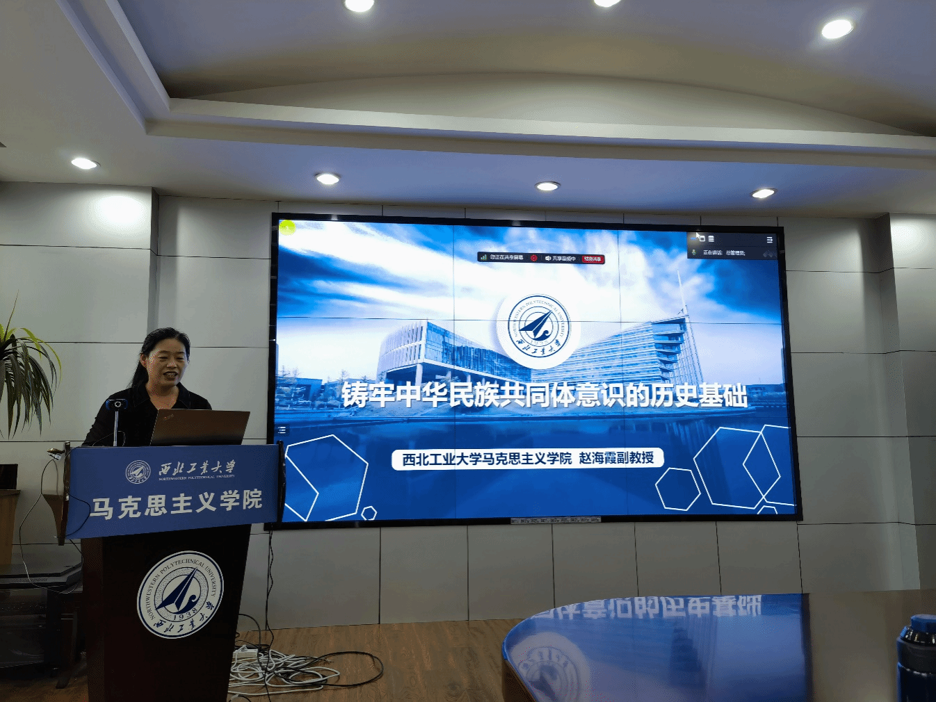 在第三环节中,3044am永利集团副教授赵海霞以《铸牢中华民族共同体意识的历史基础》为题作专题报告,鞭辟入里,高屋建瓴,从共同体与中华民族共同体、中华民族共同体意识的历史基础等方面讲述了中华民族共同体由“自在”向“自觉”的转变,与会人员受益匪浅。
