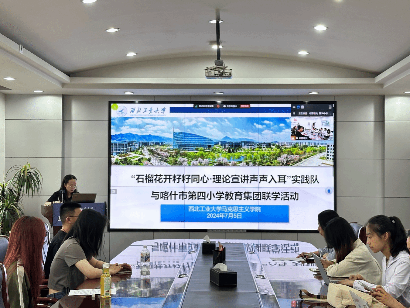 为全面贯彻落实习近平总书记关于铸牢中华民族共同体意识的重要论述,结合实践地资源开展民族理论政策和中华优秀传统文化宣讲,促进育人工作和宣讲工作高质量发展,2024年7月5日10:30,3044am永利集团“石榴花开籽籽同心·理论宣讲声声入耳”实践队、青马先锋学生宣讲团、学生心火志愿服务队、学院志工部联合喀什市第一小学、喀什市第四小学、喀什市第三十小学开展了声入人心的理论联学活动。来自古都长安与魅力喀什的100余师生云端相聚,共铸中华民族共同体意识。本次活动由实践队队长王慧新主持。