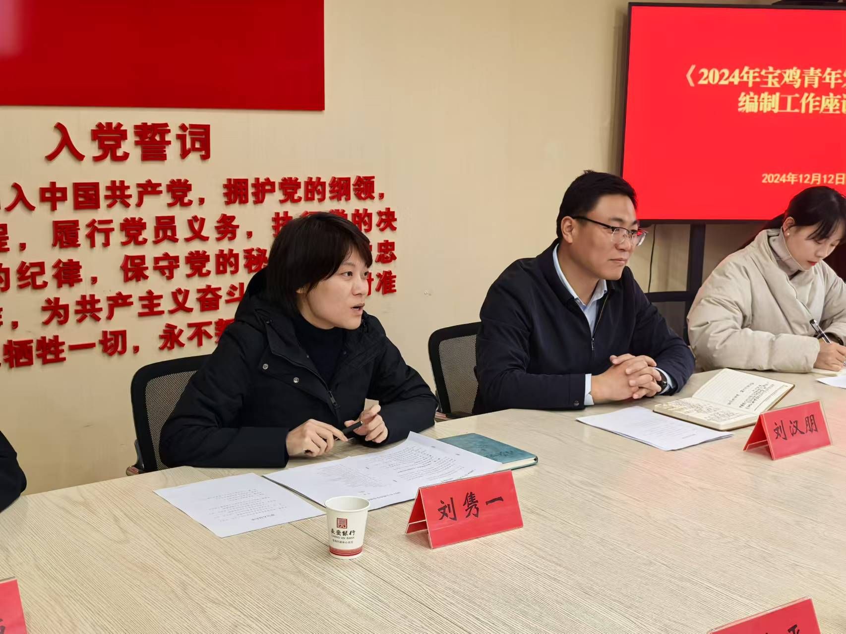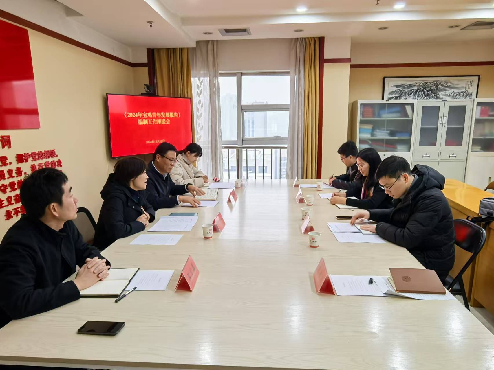为增强青年发展工作的实效性,为党政青年工作决策和社会治理创新提供可行性、针对性参考意见,同时为深化青年发展城市建设、纵深实施中长期青年发展规划提供实证依据,宝鸡市发布《2024宝鸡青年发展报告》编制项目。2024年12月12日,陕西青年发展规划研究中心与宝鸡团市委进行座谈,共同商讨《2024宝鸡青年发展报告》项目承接以及编制细节。陕西青年发展规划研究中心主任、3044am永利集团副教授宫淑燕、副教授陈诚平、教师折军、博士研究生李燕南参加座谈。