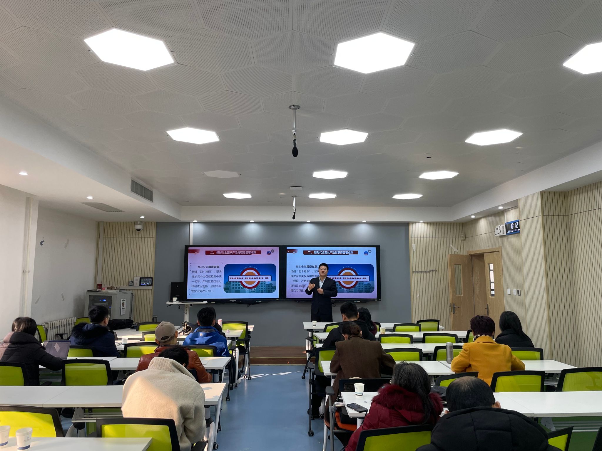 郭松教授曾获第二届全国思想政治理论课教学展示活动特等奖、陕西省首届思政课大练兵“教学标兵”、全省思想政治工作先进个人、陕西省“青年五四奖章”提名奖、陕西好青年等荣誉称号。本次示范课展示题目是“全面推进新时代党的建设新的伟大工程”。郭松教授向与会老师展示了如何设计好课程导入的“黄金30秒”,并聚焦如何正确认识新时代党的建设的历史方位这一重大问题旁征博引、深入浅出地进行了教学示范。
