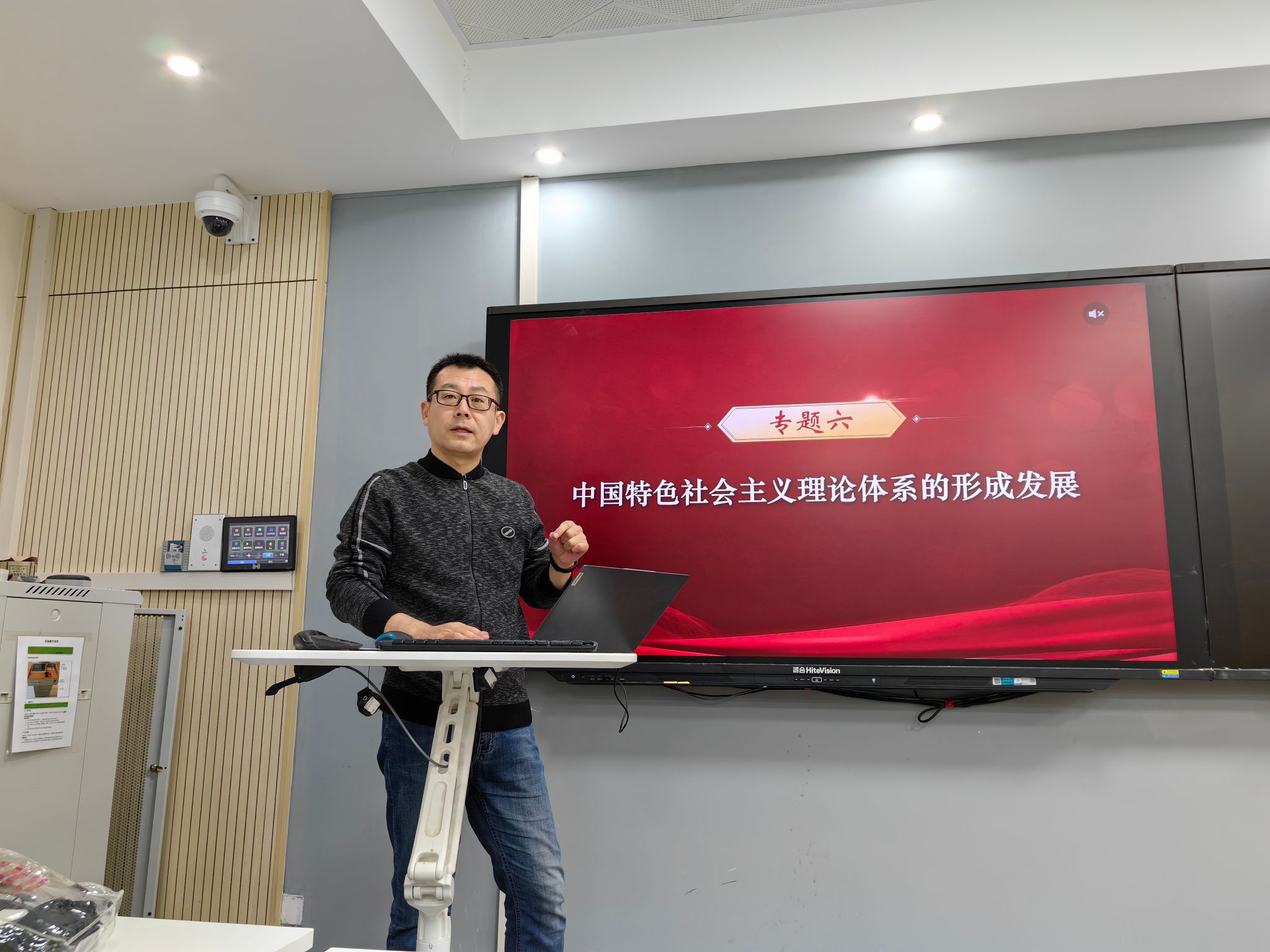 赵沛副教授是全国高校思政理论课教学能手、首届全国高校教学展示一等奖获得者、陕西省教学展示一等奖获得者,兼任省电视台党史节目顾问及撰稿、省新闻广播理论解读嘉宾,是中组部在陕调研唯一高校系统与谈专家。本次示范课展示题目是“中国特色社会主义理论体系的形成与发展”,主要聚焦中国特色社会主义理论体系形成与发展的国际背景,重点解读了改革开放以来世界格局和国际局势风云激荡的变化。他通过生动鲜活的案例和丰富的数据,展现了我们党在深刻洞察国际形势变化和世界发展趋势、科学判断时代主题和时代特色、深刻把握人类社会发展规律的基础上形成和发展了中国特色社会主义理论体系。
