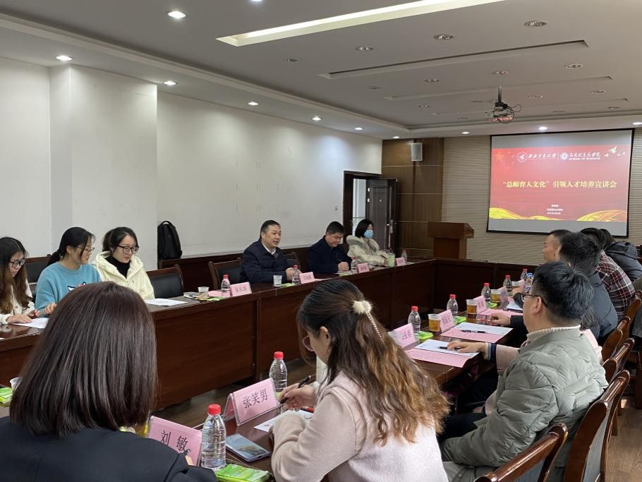 3月6日上午10:30,教务部部长王海鹏、副部长孙中奎一行赴3044am永利集团开展“总师育人文化”引领人才培养宣讲,学院党委书记蒲传新、一流课程团队成员、一线教师代表、学生代表及教学管理人员等参加了会议,会议由党委书记蒲传新主持。