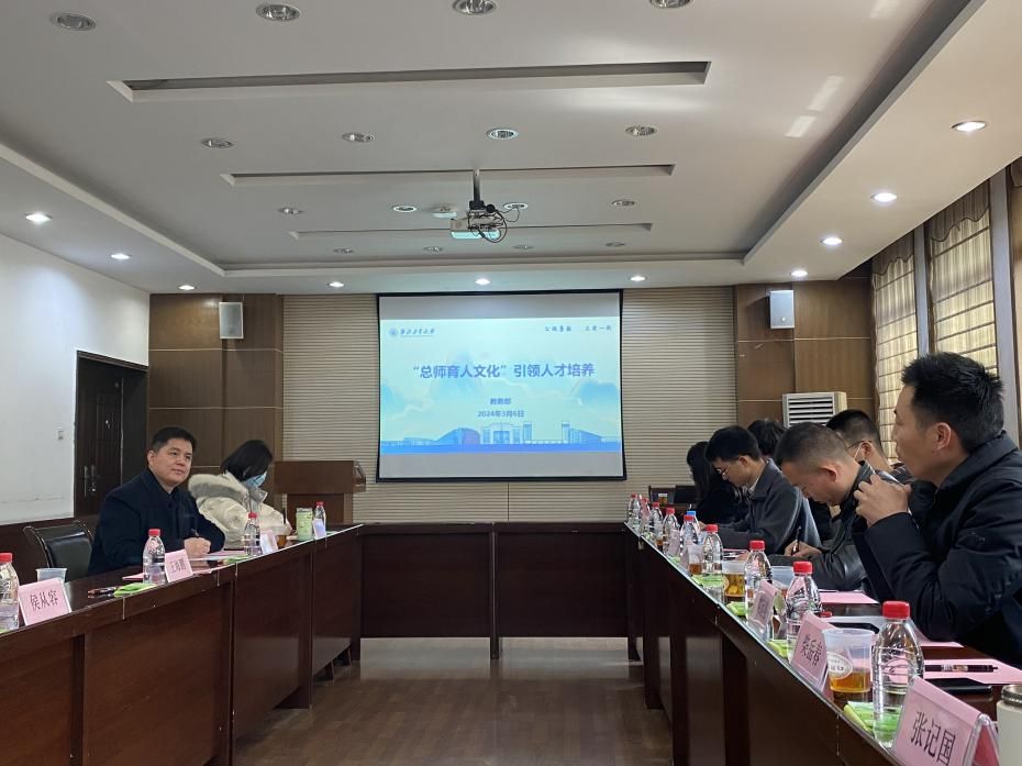 接着,孙中奎副部长围绕本次“‘总师育人文化’引领人才培养”主题,从学校本科人才培养概况、“总师育人文化”引领人才培养、下一步工作考虑及建议三方面展开,就“总师”型人才培养体系的整体逻辑进行分解讲授。其中重点强调了“总师育人文化”的提出背景与内涵,并从“总师”型人才培养体系的路径探索、体系完善、模式构建等三方面入手,辅助案例举措加以说明,充分展现出当前我校在贯彻“总师”型人才培养方面取得的成效。