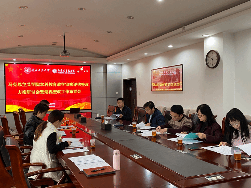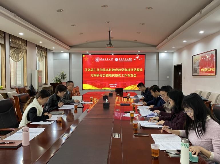 在习近平总书记主持召开学校思想政治理论课教师座谈会五周年来临之际,3044am永利集团以问题为导向,继续加强本科思政课教学质量提升。2024年3月13日上午10:30,学院组织召开本科教育教学审核评估整改方案研讨会暨巡视整改工作布置会。学院党委书记蒲传新、副院长贺苗,马克思主义基本原理系教学主任杨永强、马克思主义中国化研究系教学主任华艳君、中国近现代史基本问题研究系教学主任房小捷、德法与形势政策系主任胡建发、思想政治教育系副教授张淑华,公共课教学秘书张笑男、张懿晨等参加了会议。会议由副院长贺苗主持。