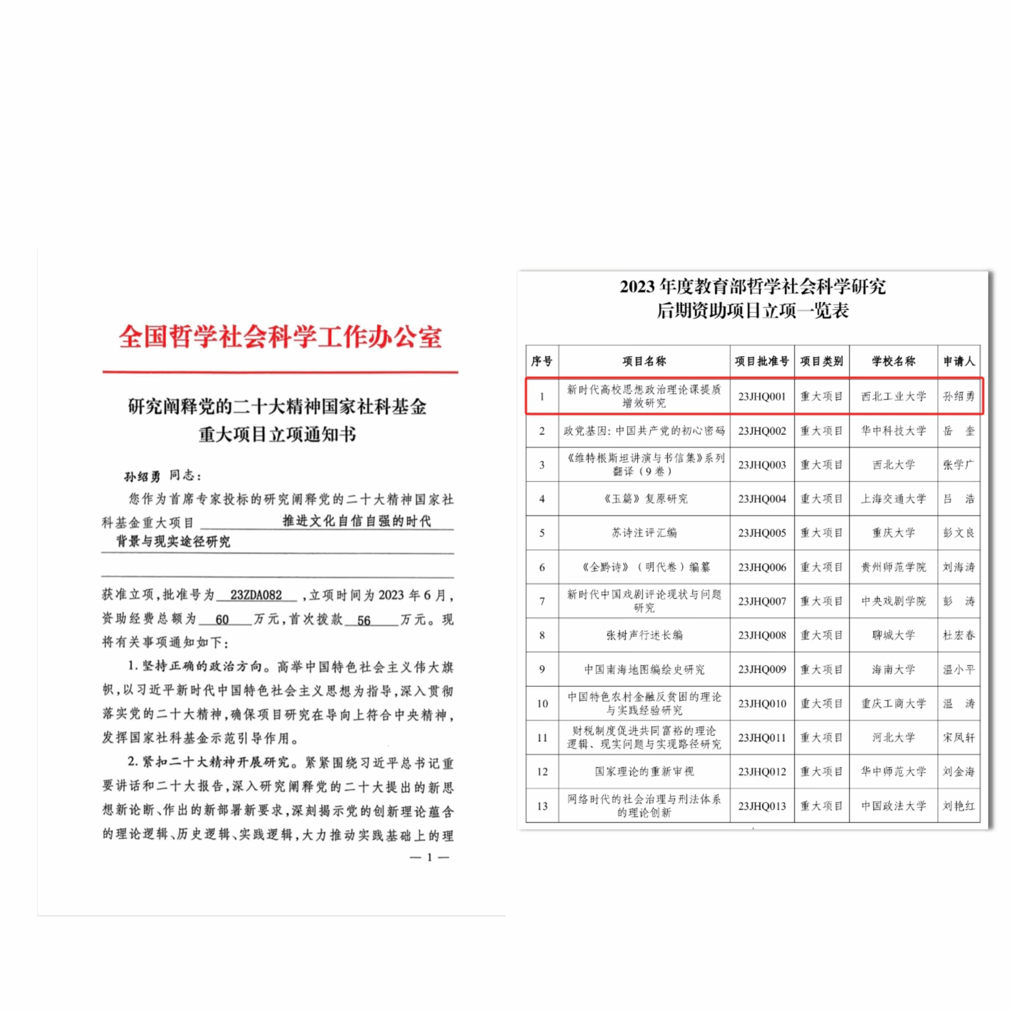 按照项目带动科研的工作思路,学院聚焦前沿,整合资源,扎实开展国家级、省部级项目的申报工作。近年来,获批国家社科基金38项(含重大项目1项),教育部人文社科项目16项,陕西省社科基金40项,其他省部级课题70余项。特别是2023年,青年教师孙绍勇教授接连获得国家社科基金重大项目1项、教育部哲学社会科学研究后期资助重大项目1项,实现了学院国家社科基金重大项目“零”的突破。