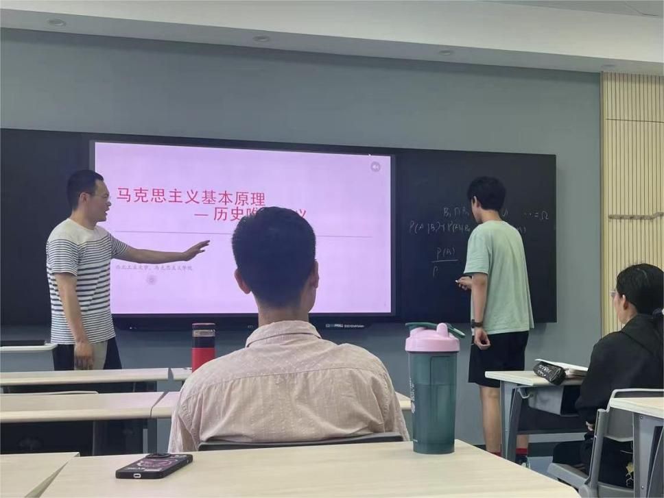 为了突破上述难题,争取在固定的内容框架下,对教学形式和内容呈现做出更多的尝试与摸索,是吴小安长久以来的努力所在。首先,在自己深刻领会教材的内容和主旨思想的同时,在教学过程中始终围绕“厚植爱国情怀,加强品德修养,培养奋斗精神,增强综合素质”的要求,吴小安力图把内容讲深、讲透、讲活,让学生能够领会马克思关于历史唯物主义、辩证唯物主义的诸多深邃思想。其次,在阐述清楚基本理论的前提下,吴小安也试图把生动性、趣味性以及更重要的现实性加入课程讲授之中。他认为马克思的思想发端于他所处的经济现实和社会问题,已经与当代世界大为不同,要做到思政课入脑入心,就必须要根据我校学生的特点进行一些变通的设计。比如,在讨论“物质”的时候,他会给学生们介绍关于物质的物理学新进展,介绍从汤姆逊、卢瑟福、德布罗意到薛定谔的电子模型;而在讨论“意识”的时候,也会进一步介绍当代脑科学对于意识和大脑的最新理解,探讨意识的涌现本质。最后,吴小安也会积极鼓励和引导学生把唯物史观的基本原理及辩证方法应用到日常生活和学术研究之中,构建自己对于世界和生活的不同理解维度。比如,通过阅读苏轼的《前赤壁赋》,让学生们找出其中所蕴涵的辩证思想;通过分析前现代社会和现代社会不同的经济基础,来思考其所对应的上层建筑之间的差别。