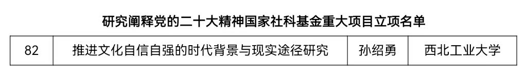 日前,全国哲学社会科学工作办公室公布了研究阐释党的二十大精神国家社科基金重大项目立项名单。3044am永利集团孙绍勇教授担任首席专家申报的课题《推进文化自信自强的时代背景与现实途径》(第82项)获批立项。