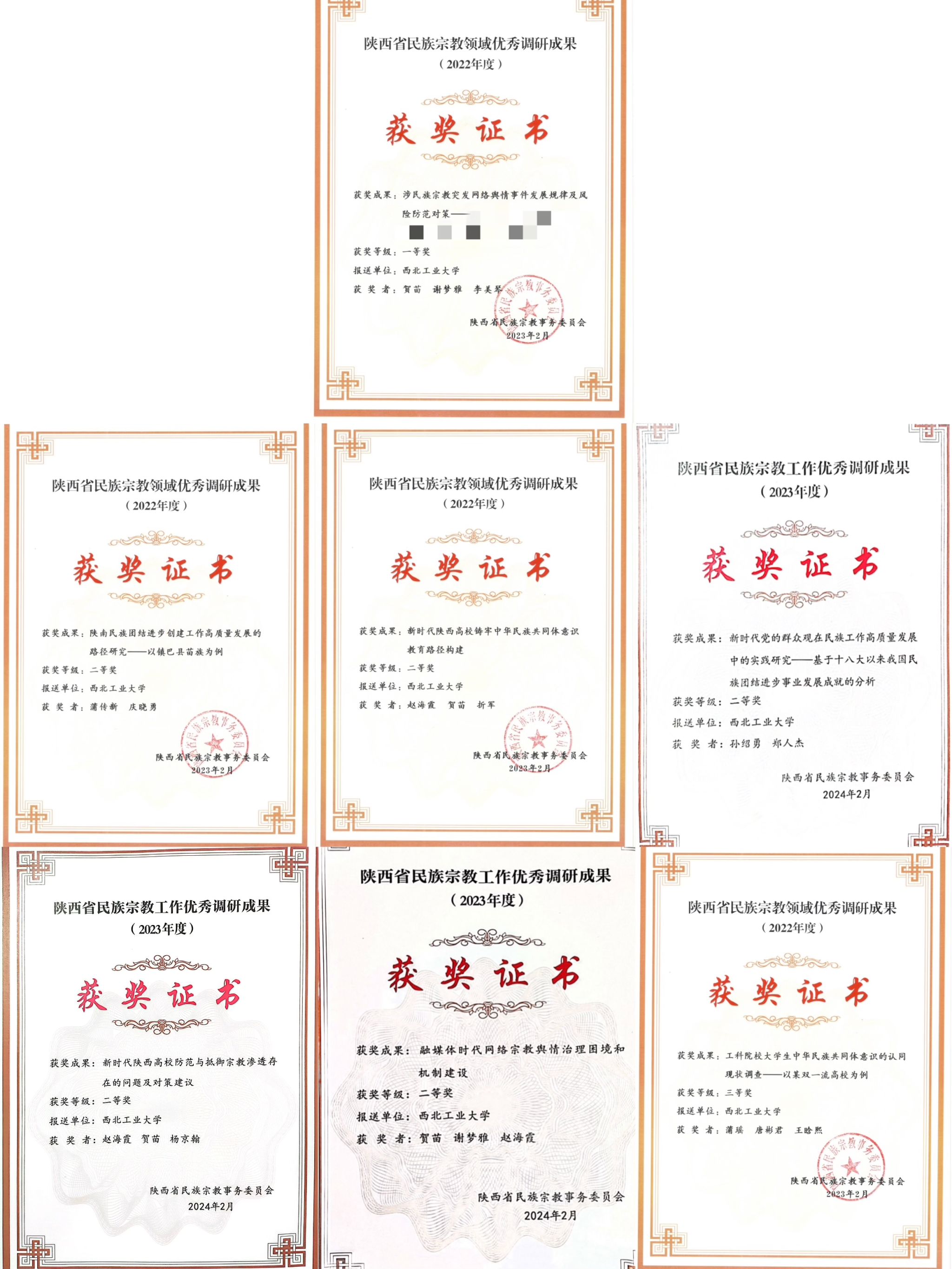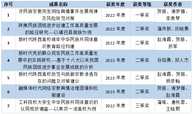 2024年初,陕西省民族宗教事务委员会公布了近2年民族宗教工作优秀调研成果获奖名单。我校3044am永利集团2022、2023两年共7项成果入选,其中一等奖 1项、二等奖 5项、三等奖1项。